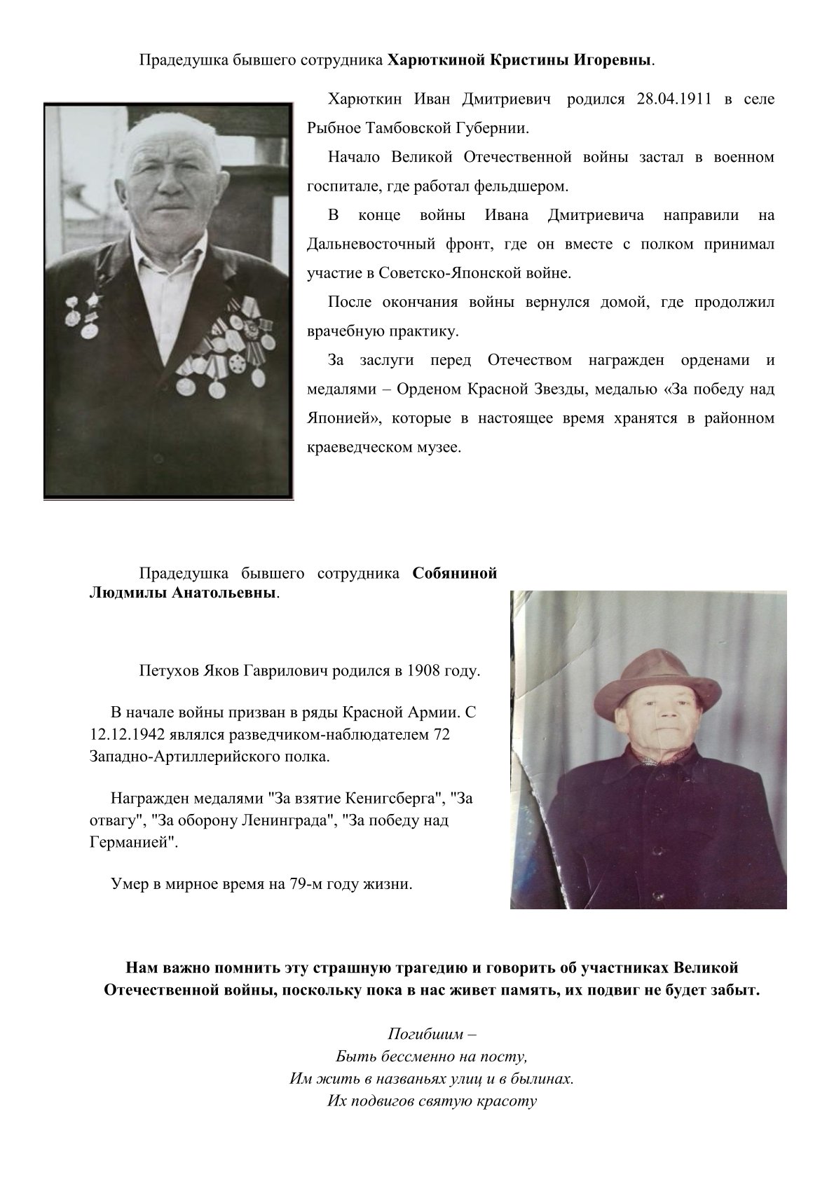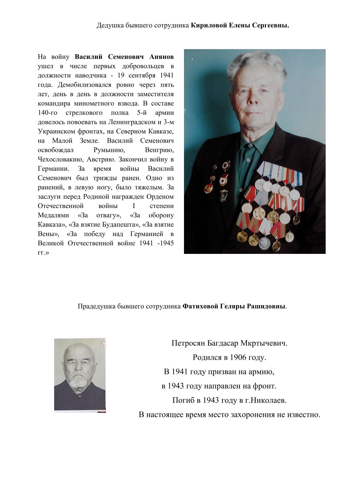 Мы хотим рассказать о том вкладе в общую Победу, который внесли родные работников Дзержинского районного суда г. Перми.